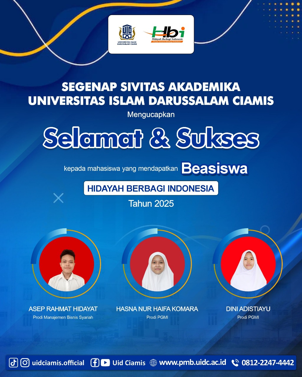 Alhamdulillah terdapat 3 mahasiswa yang mendapatkan beasiswa dari salah satu lembaga Filantropi. Sukses selalu untuk mahasiswa UID Ciamis!